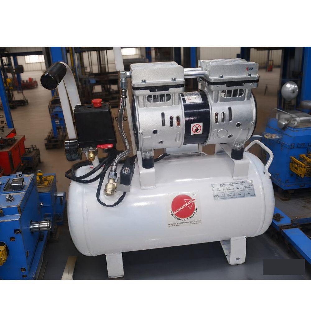 An Oil-Free Air Compressor is a high-precision, medical-grade engineering solution designed to deliver pure, dry, moisture-free, and 100% oil-free compressed air for applications where cleanliness and reliability are absolutely critical. Unlike oil-lubricated compressors, this system eliminates any risk of oil carryover, ensuring contamination-free air that supports sensitive pneumatic tools, laboratory instruments, and equipment requiring stable, hygienic airflow. Built with advanced noise-reduction technology, low-vibration components, heavy-duty copper windings, and a corrosion-resistant storage tank, this compressor guarantees long operational life and consistent, high-performance output. Its high-efficiency cooling system, automatic moisture drain, thermal overload protection, and stable pressure regulation make it ideal for continuous-duty environments where precision and uptime matter the most. With a robust structure and minimal service requirements, the oil-free compressor enhances productivity, reduces downtime, and supports a clean and safe working environment. This is not just a compressor—it is a technically superior solution for industries demanding purity, accuracy, and uninterrupted performance.