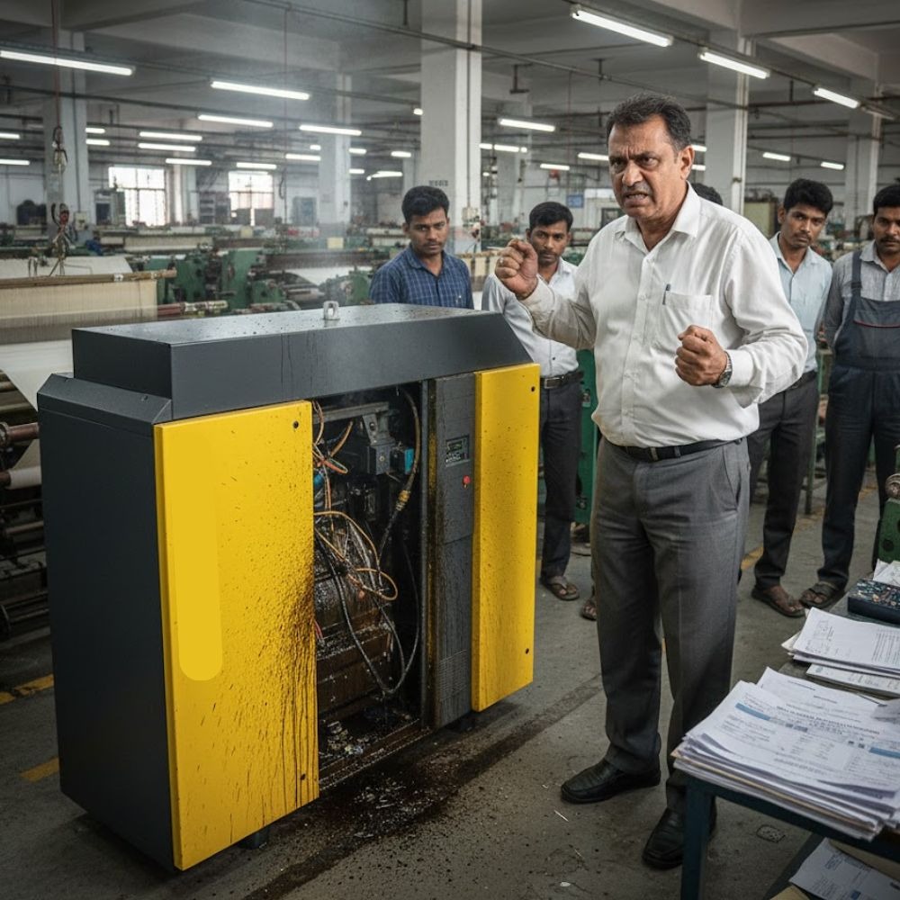 We at Samarthair Pneumatics Pvt. Ltd. have come across countless textile business owners facing heavy losses because their production comes to a halt due to air compressor failures. When an air compressor stops working, it doesnβt just stop machines it wastes valuable labor hours, electricity, raw materials, and most importantly, precious time. Understanding these real challenges on the shop floor, Samarthair ensures you get the right air compressor designed specifically for your machinery and production needs, not a one-size-fits-all solution. From manufacturing reliable compressors to providing complete after-sales support and AMC services, we stand by you at every step. Once you have an air compressor, and you have Samarthair, you have a trusted partner to handle all your air compressor problems so your production never stops again.